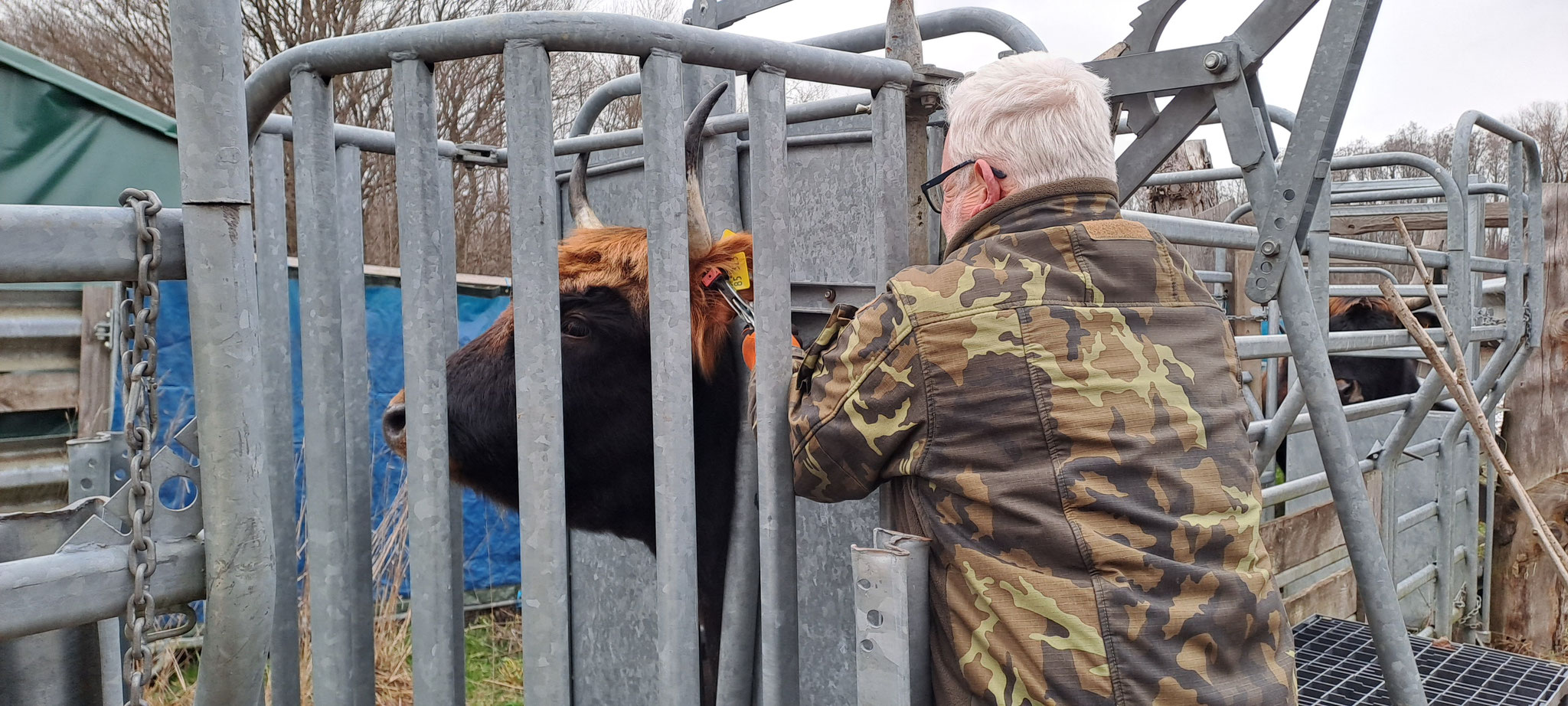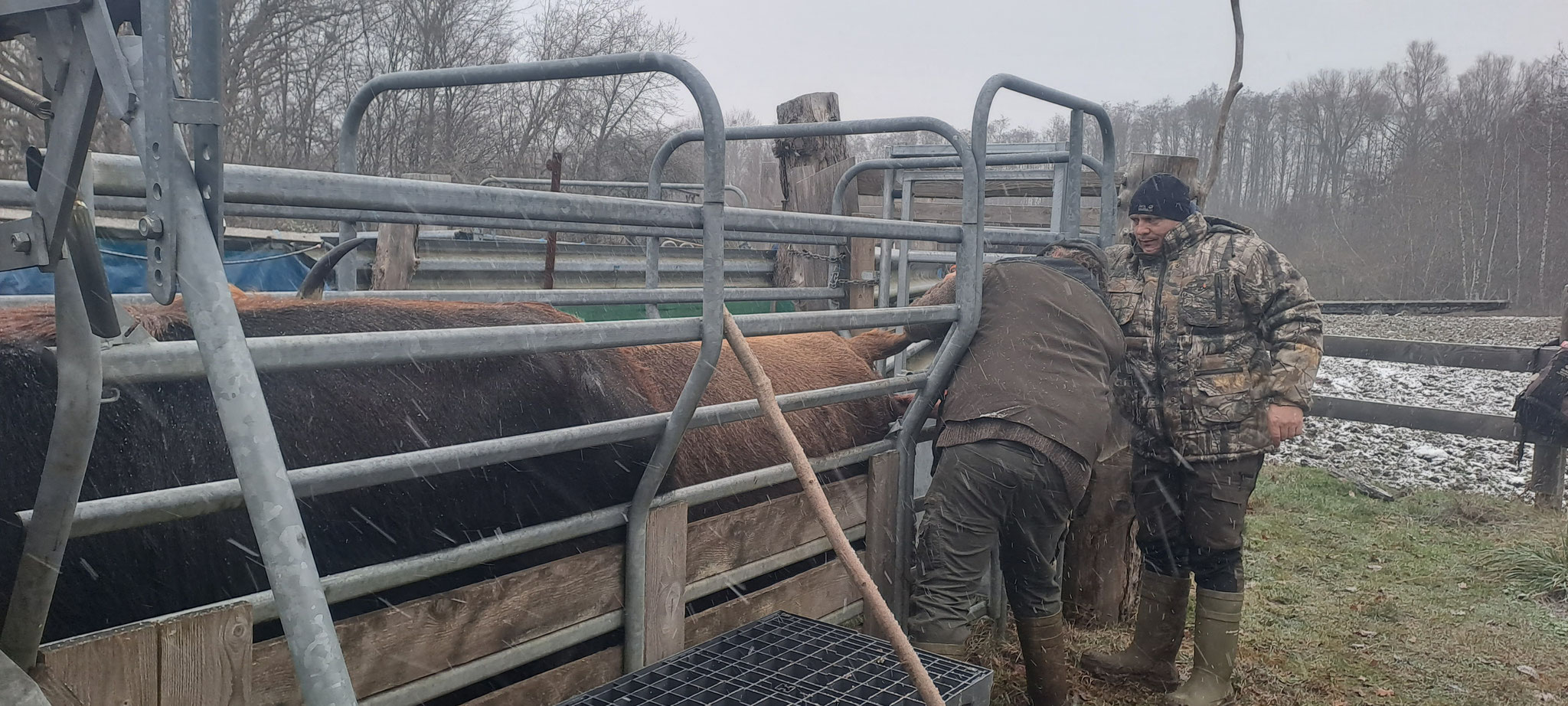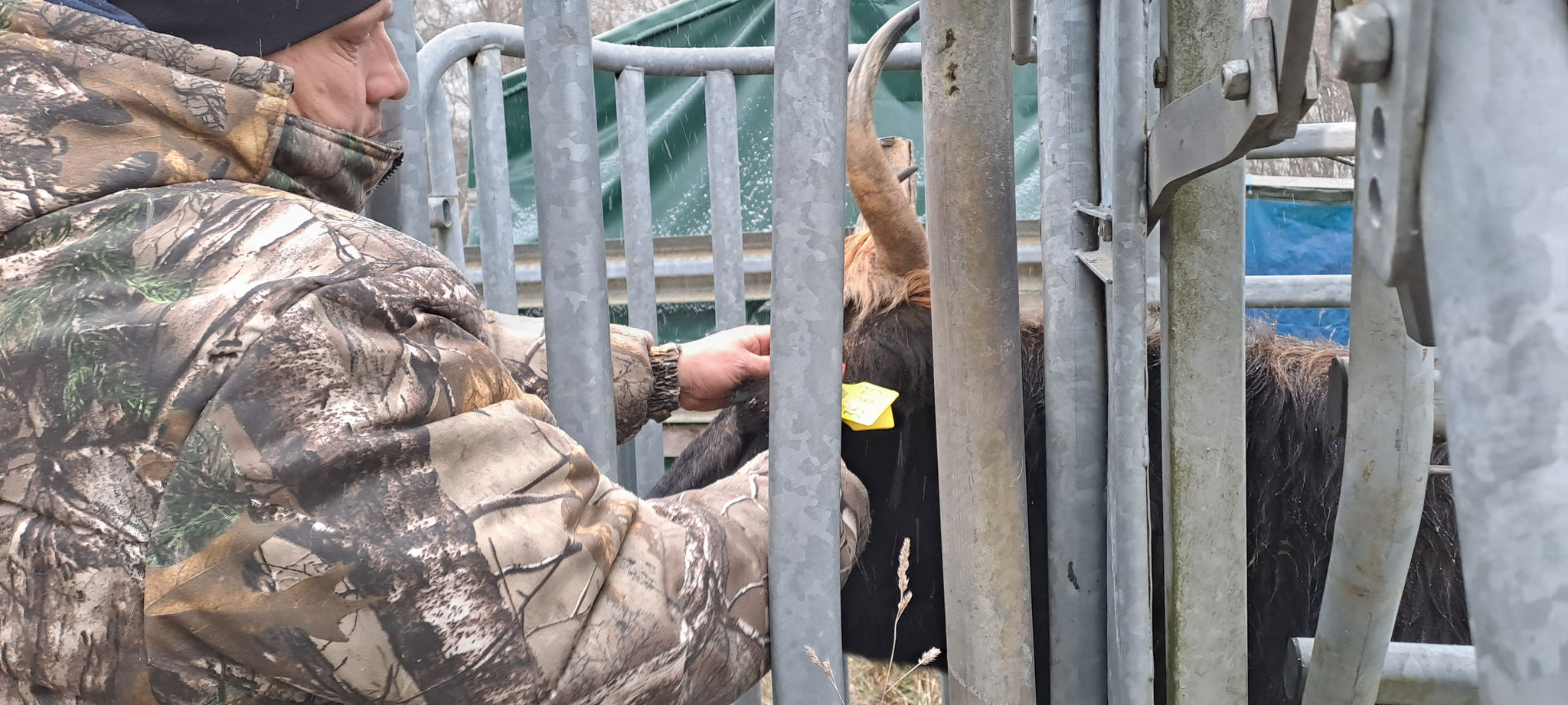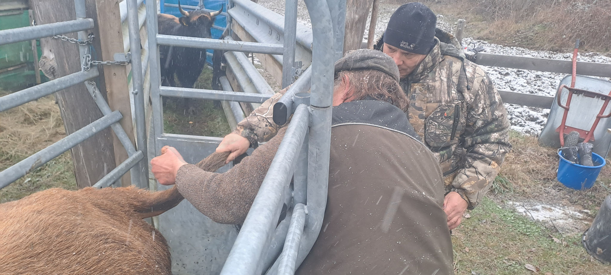 Wir erledigen Tiertransporte zwischen unseren verschiedenen Projektorten. Diese müssen auch zur Vermeidung von Inzucht durchgeführt werden. Ohrmarken müssen innerhalb von 7 Tagen nach der Geburt der Kälber an den kleinen Kälbern gesetzt werden, was bei dieser Haltung eine besondere Herausforderung ist, besonders für uns.
