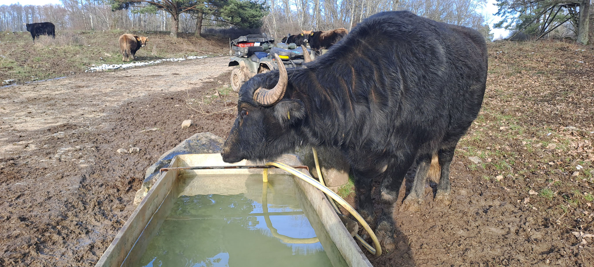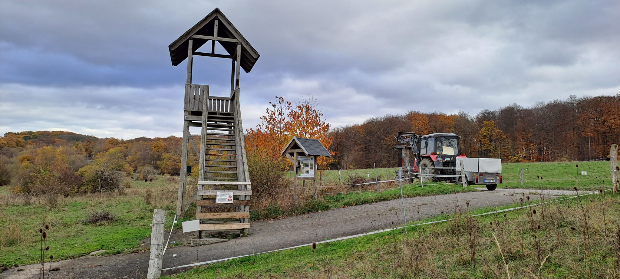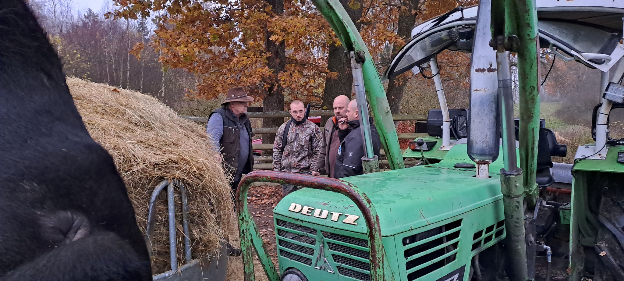 tägliche Gesundheitsprüfung aller Tiere, Wasser fahren, Tränken und Bottiche säubern (im Winter Entfernung vom Eis), tägliche Zaunkontrollen, evtl. Zaunreparaturen z.B. wegen Sabotage, Heuernte, Ballenpressen, Einfahren der Ballen in das Heulager für den Winter, Freischneiden der Zaunanlage von zu starkem Graseinwuchs, damit der Strom fließt, Entfernen von umgefallenen Bäumen die gern auf unserer Zaunanlage landen, Teiche mit Quellwasser bei extremer Trockenheit versorgen, damit sich unsere Wassserbüffel wohl fühlen und ihre Körpertemperatur regulieren können, Wartung von Gerätschaften, Reparaturen z.B. des Traktors, Blutuntersuchungen unserer Rinderherde. Sie ist eine Auflage zur Tierseuchendiagnostik die 1x jährlich stattfindet, regelmäßige Kontrollen durch Veterinärbehörden, Dienstleistungsdirektion (ADD), dem Dienstleistungszentrum ländl. Raum (DLR), der Struktur- und Genehmigungs-Direktion (SGD) und der Unteren Naturschutzbehörde (UNB) und und und.